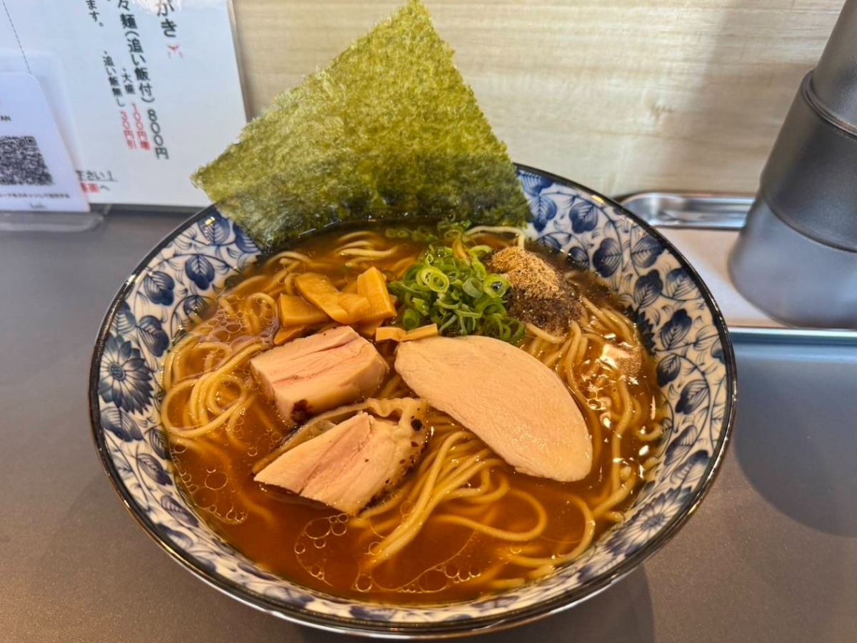 「煮干し鶏そば」(820円)は、煮干し出汁の豊かな風味が楽しめる贅沢なラーメン。