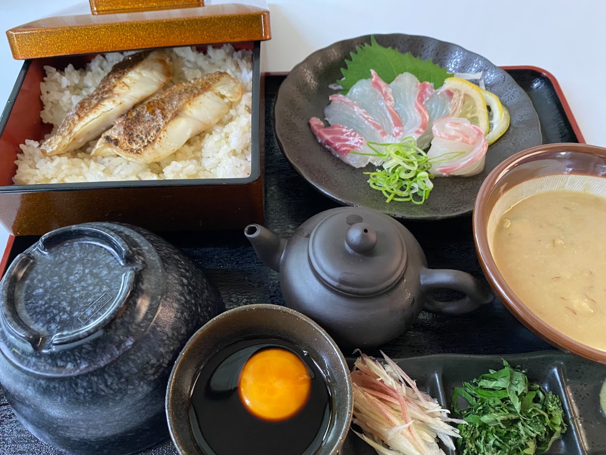 松山風鯛めし、宇和島風鯛めし、南予地方の鯛さつま汁を一度に味わえる、まさに愛媛の魅力を詰め込んだ定食です。