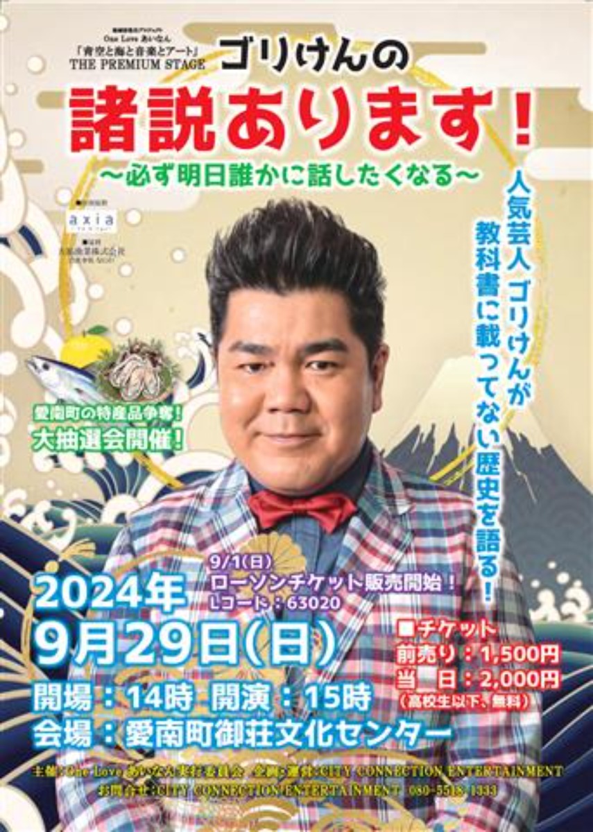9月のイベントは「ゴリけんの諸説あります!」のライブイベントを開催。歴史好きの人気芸人・ゴリけんが教科書には載っていない歴史を語る、ラジオ番組内の人気コーナー。各地でライブイベントを行っており、年齢関係なく楽しめる。