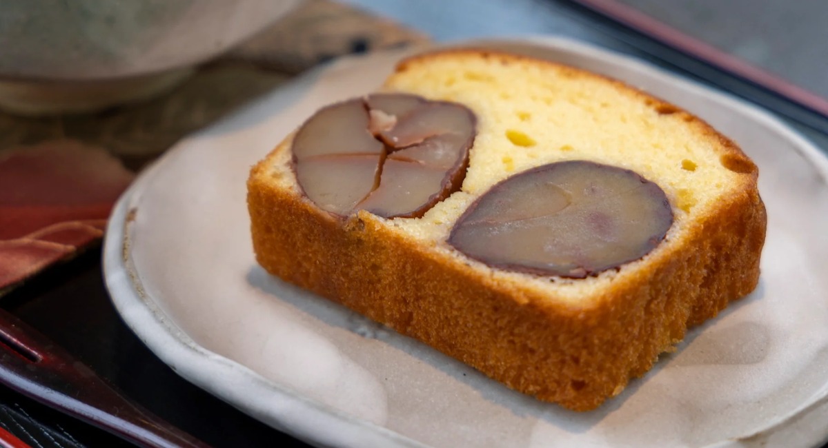 愛媛県中山町産の大粒栗がゴロゴロはいったパウンドケーキ。