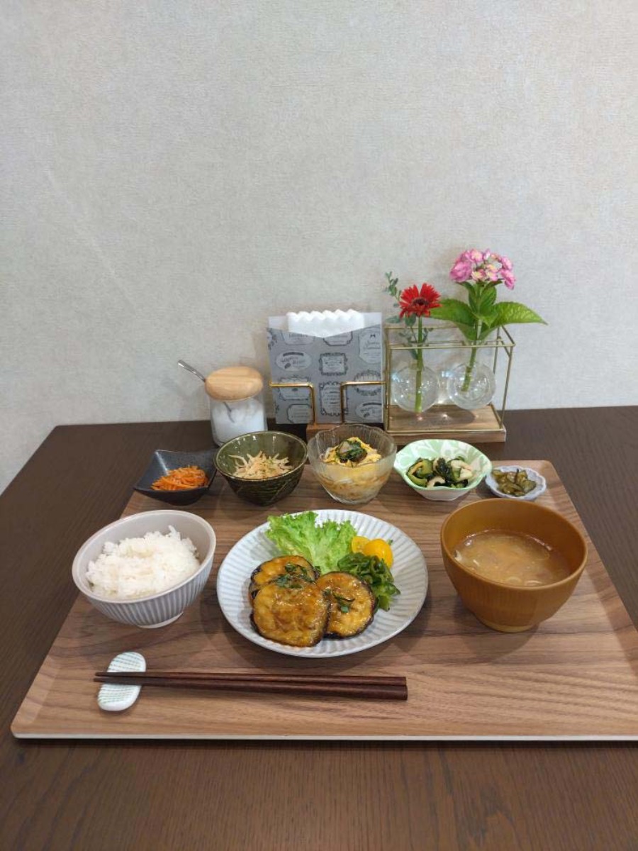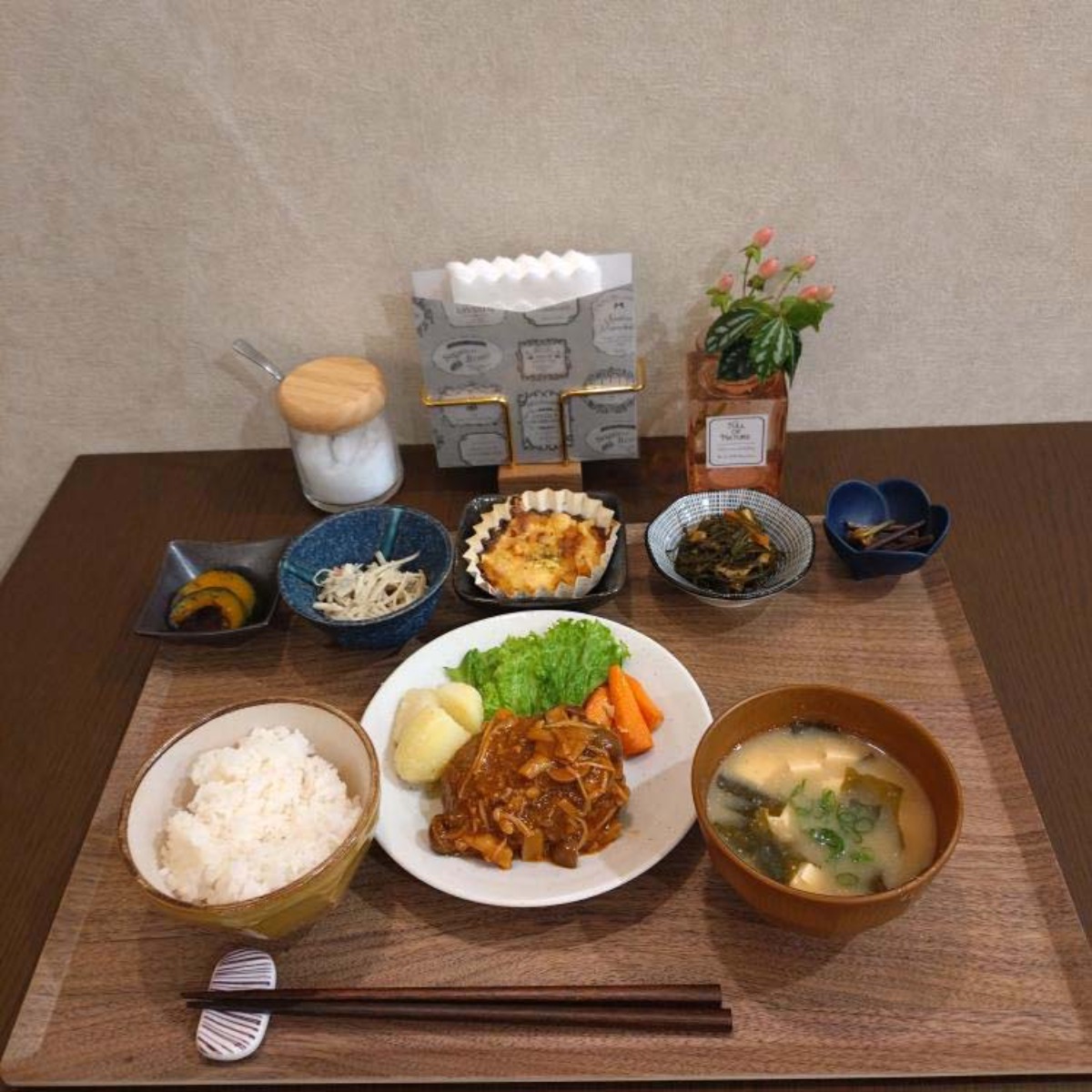 日替わりのランチは、予約分を入れて1日30食限定。主菜・副菜2種・小鉢・豆鉢・ご飯・汁物のバランスの良い組み合わせです。主に調理はお母さんが担当しているそう。プラス200円でドリンクをセットにもできます。