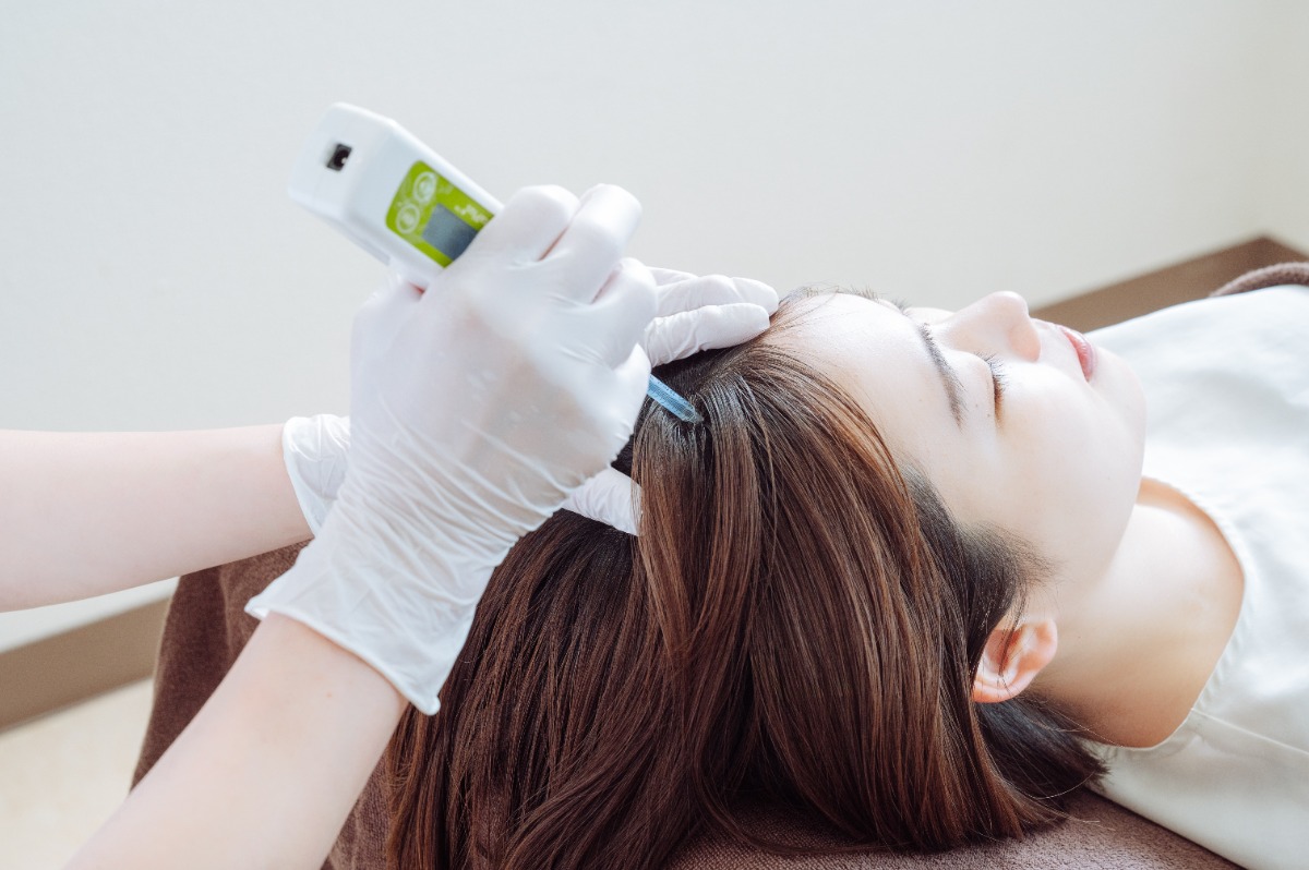 「メディカルエステK」では、医療の力で毛髪を太く、長く生えるように治療していきます。世界初の毛髪用注入剤を使って男性だけではなく、女性にも生える喜びを提供していますよ。