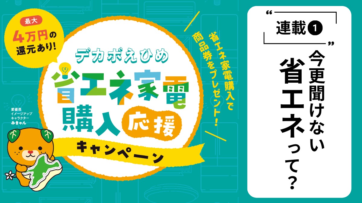 「デカボえひめプロジェクト」の一環で、省エネ性能の高い家電製品の購入を支援するというキャンペーン内容です。