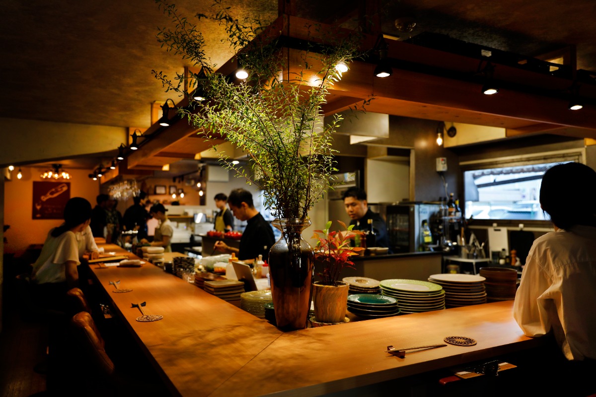 店内はオープンキッチンに面したカウンター10席と、テーブル3卓