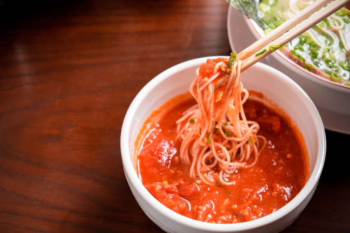 ラーメンスープを入れると、濃厚なトマトの酸味と旨みに豚骨のコクが合わさるのでおすすめです!