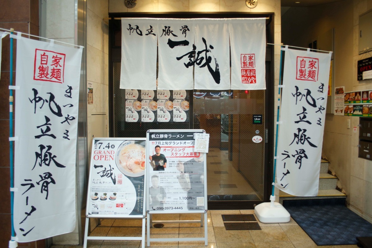 松山市大街道に2024年7月オープンした「まつやま帆立豚骨ラーメン一誠」。