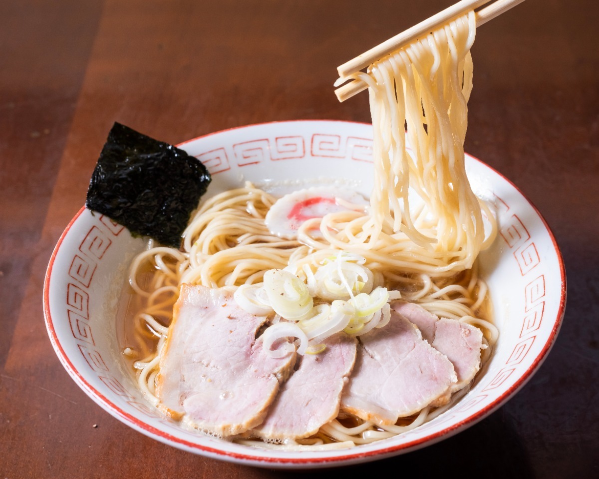 写真の「にぼし中華そば」のスープは、煮干しや昆布、背脂などを使用したあっさり風味。
