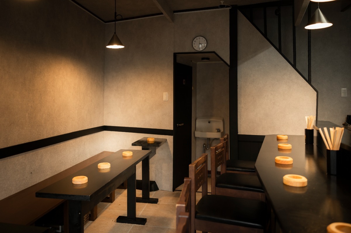 黒を基調とした落ち着いた店内は、女性ひとりでも気軽に入りやすい雰囲気です。