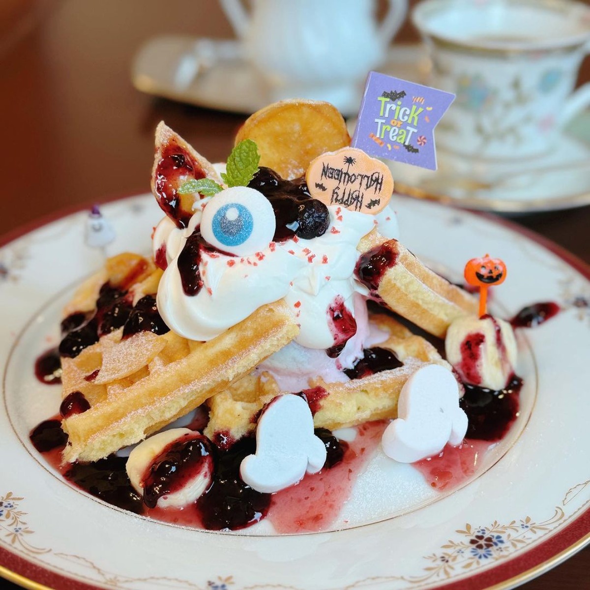 ハロウィンらしく目玉がのった少しホラーなパフェ。