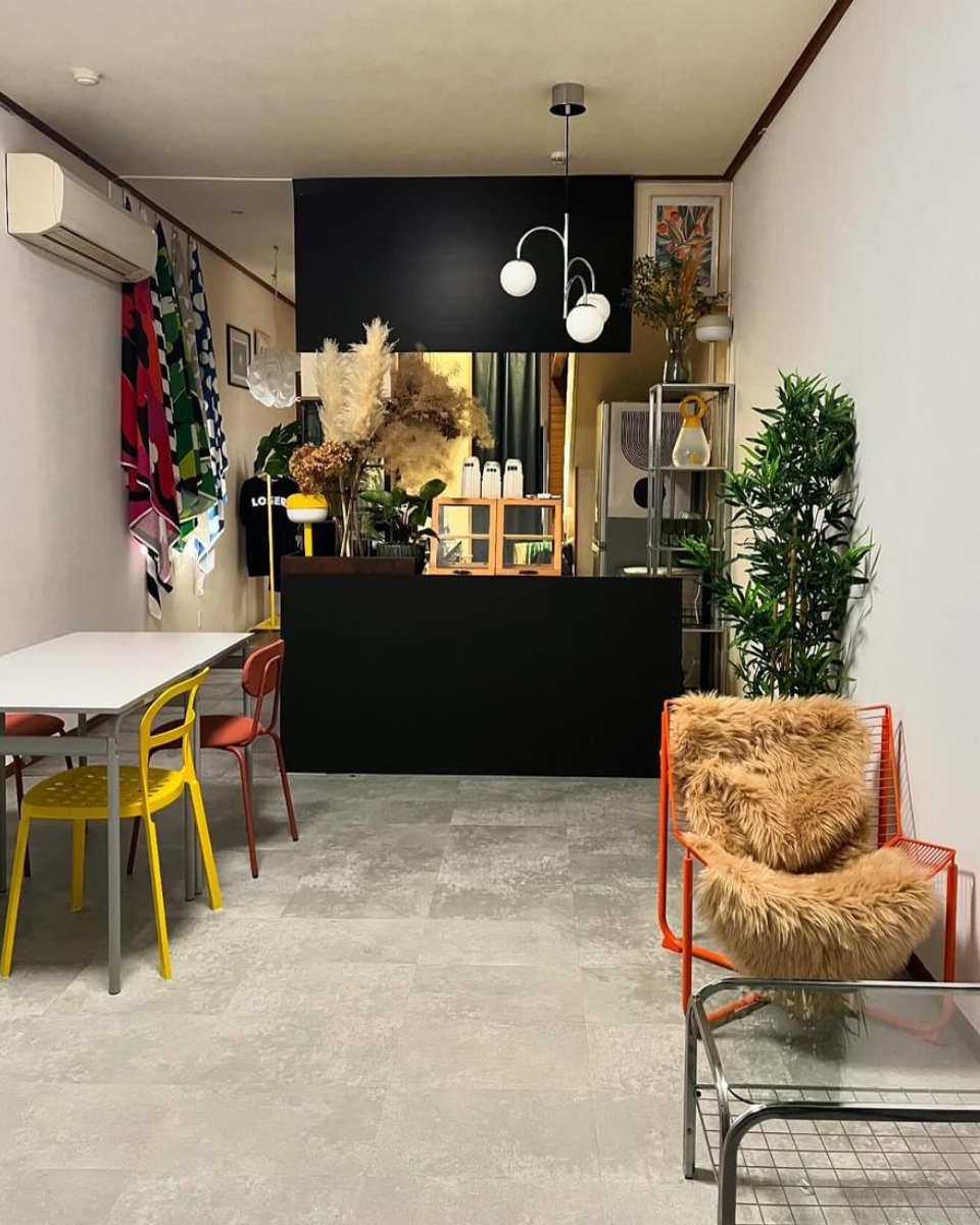 また、壁に飾られたオリジナルロゴまでオーナー自身がデザインするなど細部までこだわりが感じられ、まるで北欧のリビングルームに招かれたような居心地の良さを楽しめます。
