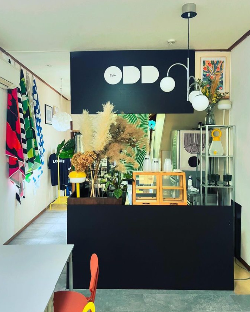 栄町商店街の老舗「ウエキ果物店」が営む「ODD Cafe」。オーナーは東京でアパレル、旅行代理店、広告代理店、BARなど多種多様な経験を積み、2年前に地元西条にUターン。親の果物屋を継ぐことを決め、商店街のシャッター街化を食い止めるべく、地元の活性化を目指し、まずは夜に集えるフルーツカクテルが楽しめるバー「CUL.」をオープン。さらに今年8月ジューススタンド「ODD Cafe」を開店させました。