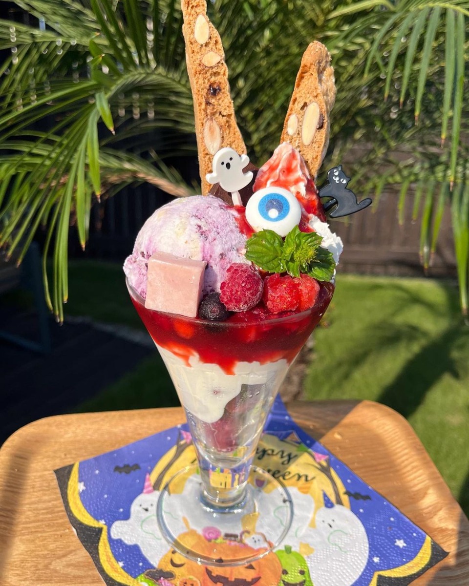 ハロウィンらしく目玉がのった少しホラーなパフェ。