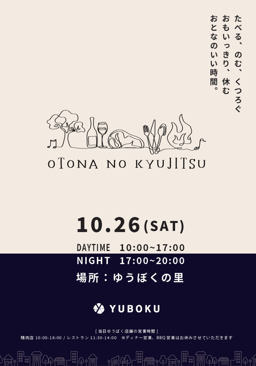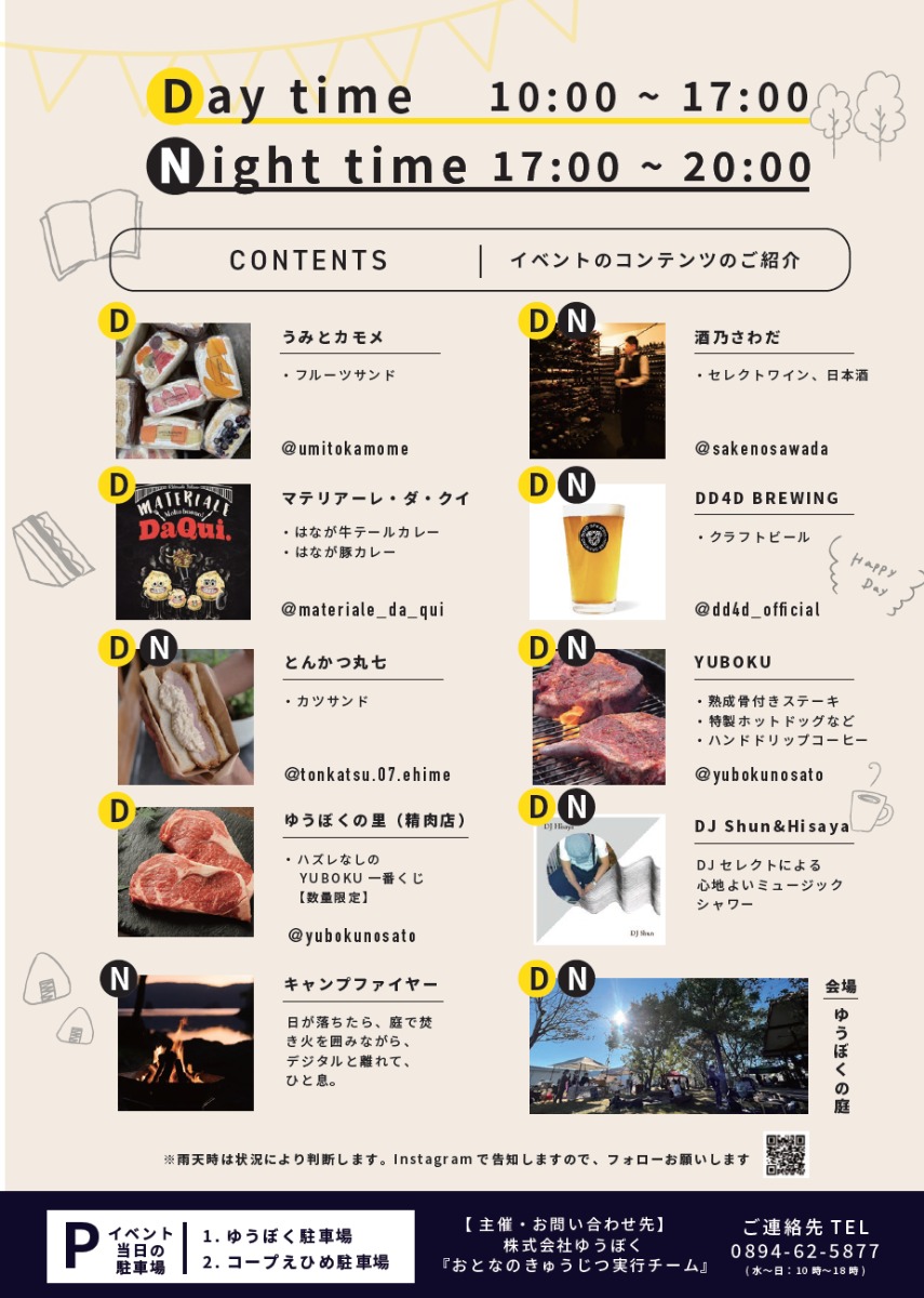 西予市にある「ゆうぼくの里」の緑あふれる庭でちょうどいい気温で風が吹き抜けて心地よい音楽を聴きながらおいしい料理に、スイーツに、飲み物を楽しむ、そんな大人が楽しめるイベント「OTONA NO KYUJITSU おとなのきゅうじつ」が開催されます!