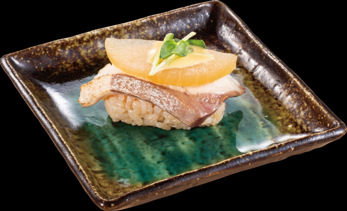 その他にも、とろりとした食感の白子をアヒージョの具材にすることで、白子のクリーミーさが引き立つ「白子のアヒージョ」やおでんの大根と炙ったぶりを合わせ、“ぶり大根”を寿司で再現した「ぶりと大根」、厚切りのぶりをさっぱりとお楽しみいただける「厚切り 炙りぶり 鬼おろしぽん酢」などの商品も登場します。