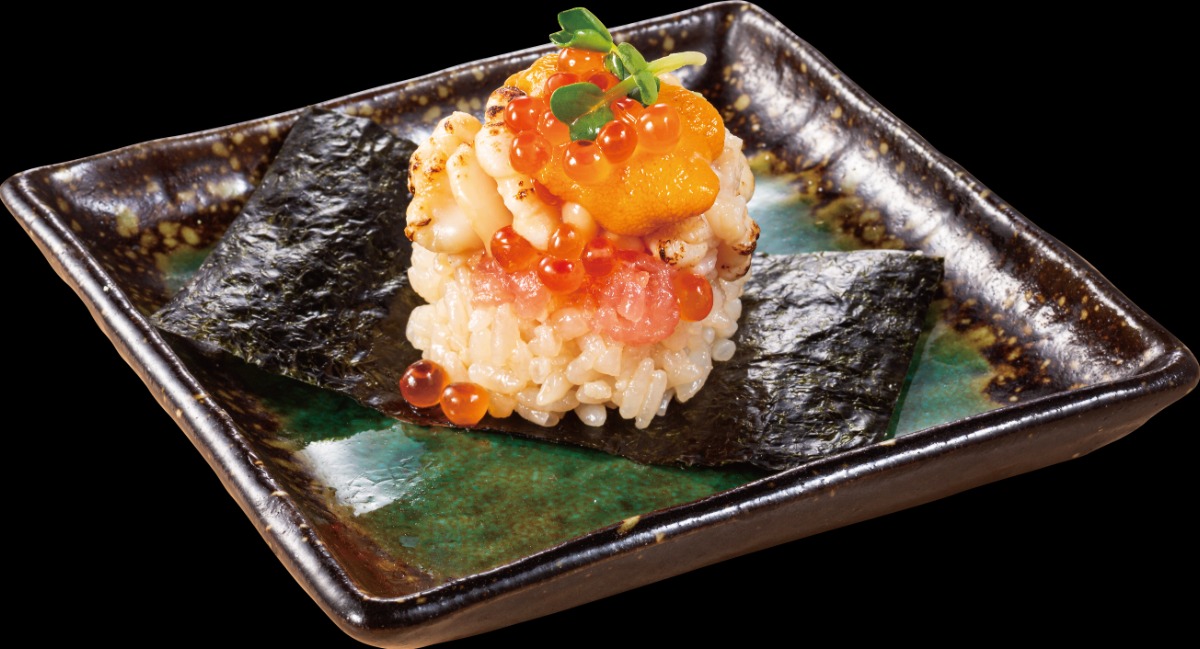 白子・塩雲丹・いくらのご褒美包み(1貫)290円(税込319円)
