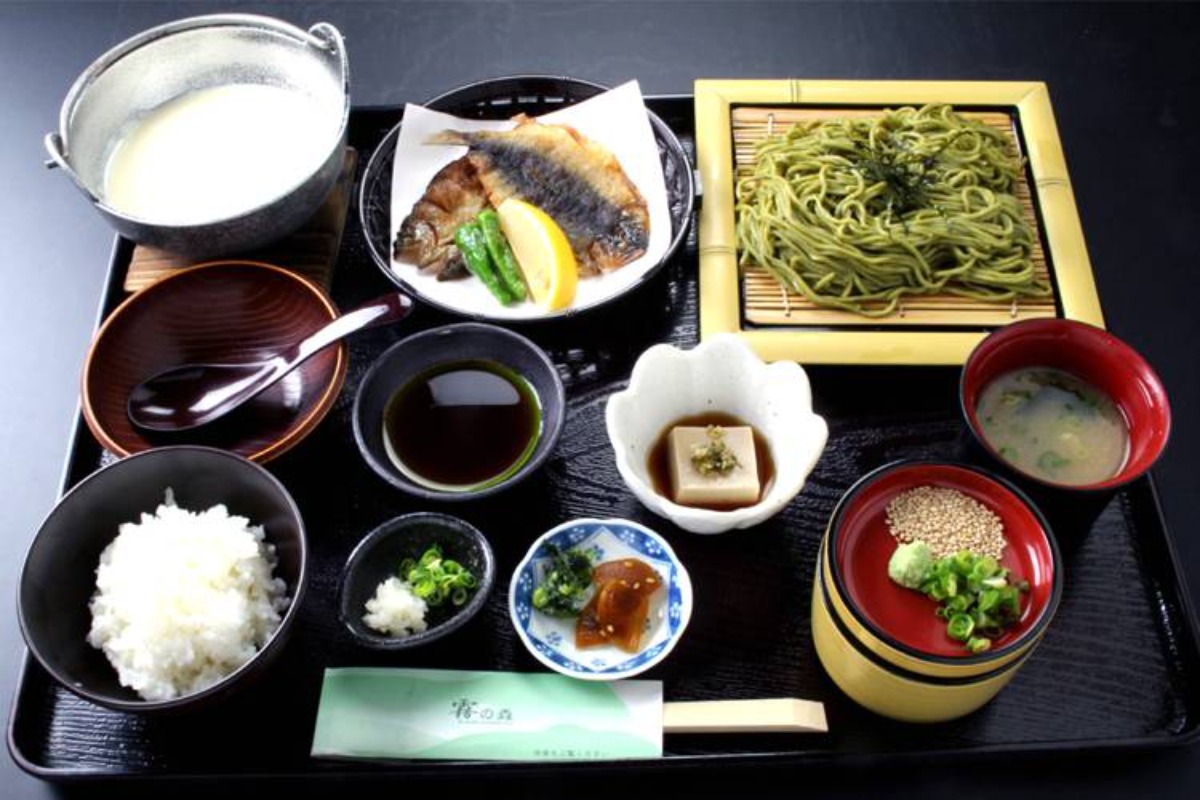 人気メニューのおぼろ豆富と茶そばを贅沢に楽しめるお得なセット。素材の美味しさを堪能!