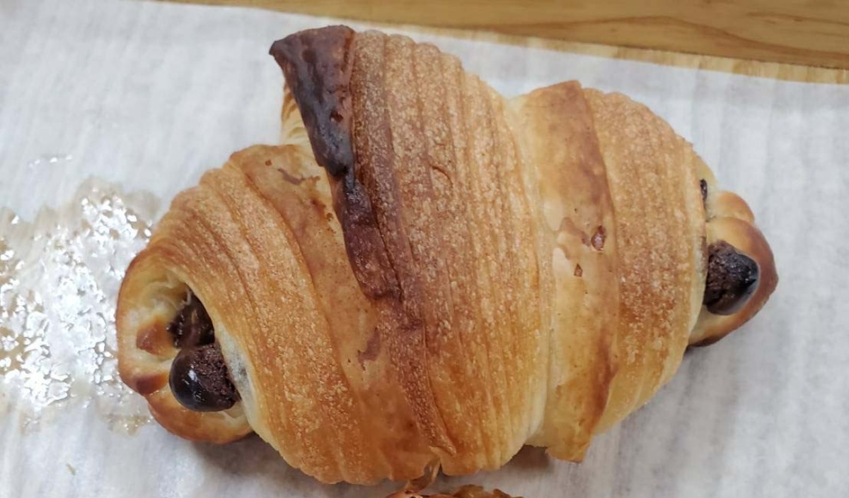 米粉のクロワッサン生地で、チョコレートを巻き込んで焼いた甘いスイーツパン。