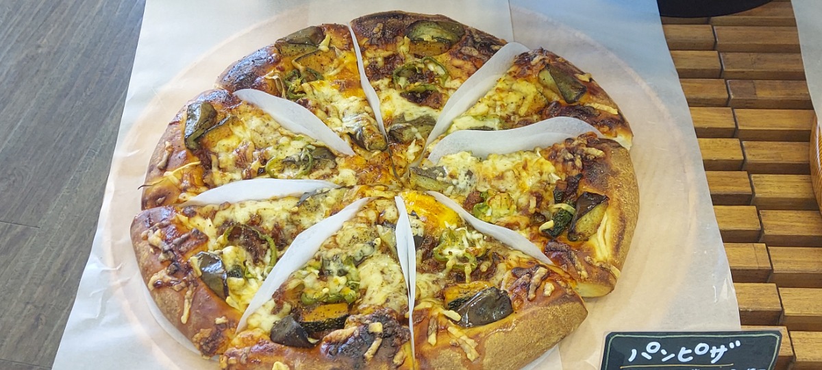 西条市産の旬の野菜をふんだんに使ったピザ。ここでしか味わえない人気パンです。