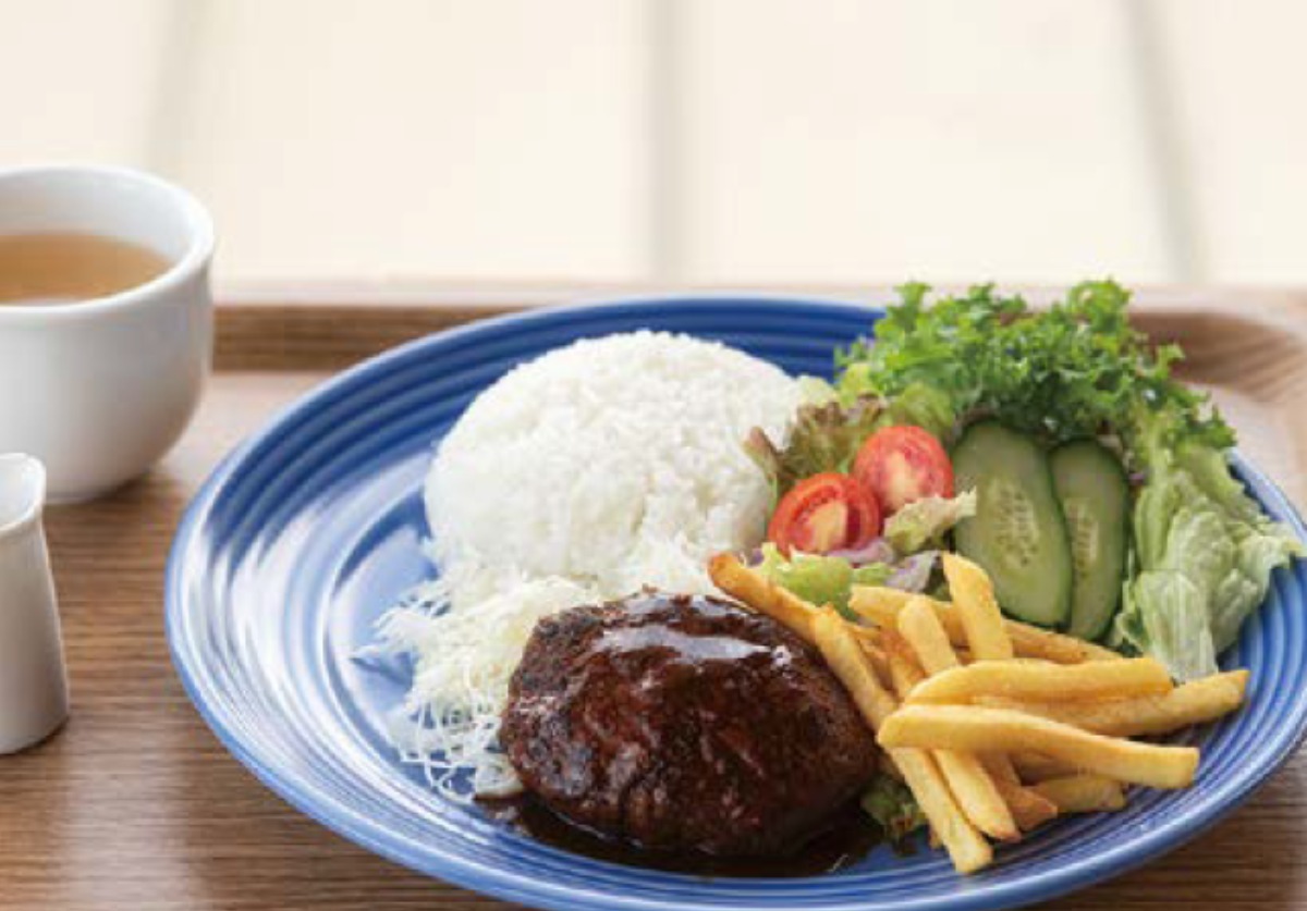 和牛を使ったハンバーグプレート。デミグラスソースはオリジナル。今治産サラダ&スープ付き!