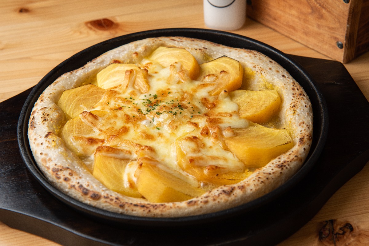 西条産はだか麦で作った生地に丹原産の柿とチーズ。甘みと塩味の絶妙なバランスがグッド!
