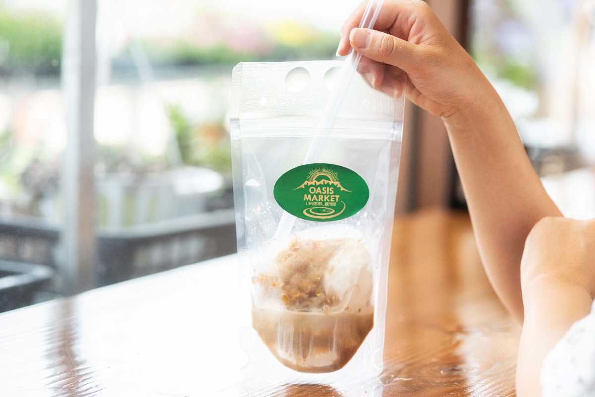 産直市「おあしす市場」には地元生産者が作る新鮮な野菜や果物が並び、店舗奥のカフェスペースでは手作りスイーツやアイスが楽しめます。敷地内にある「モンベル アウトドアオアシス石鎚」や「椿温泉こまつ」などもぜひ利用してみてください。
