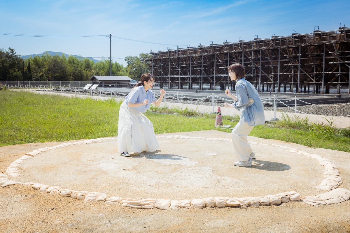 期間限定で土俵での塩まき体験も行っています。お子さんが喜ぶこと間違いなしです!