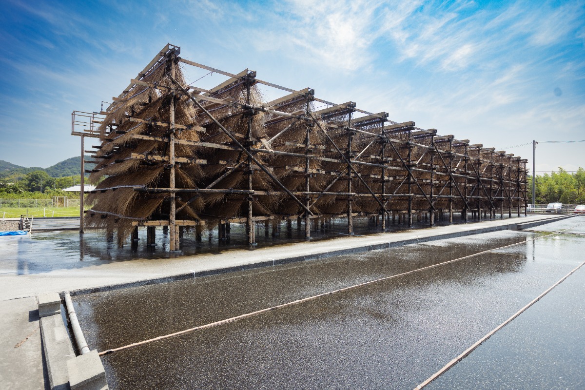 1953年から1971年まで瀬戸内海沿岸で親しまれ、伯方の塩が誕生するきっかけとなった「流下式枝条架併用塩田」も見ることができます。