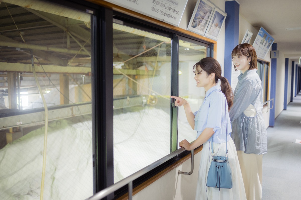 工場見学では、見学窓から伯方の塩がどのように作られるのかを見学できます。