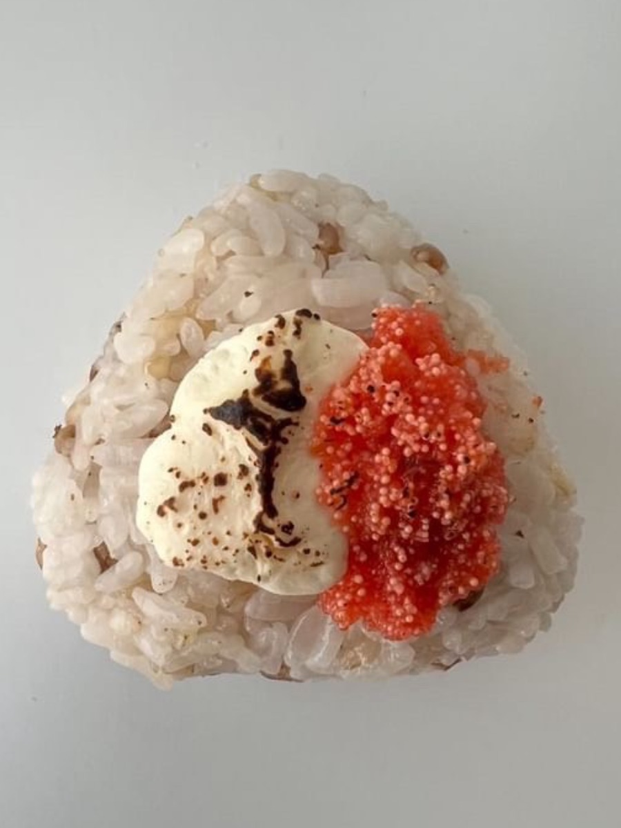 「炙り明太チーズ3種米おにぎり」(350円)は、一口頬張るたびに香ばしい香りが広がり、食欲をそそります。九州から直送される新鮮な明太子とクリーミーなチーズが、ほんのり炙られて香ばしさが増し、3種米のもちもち感と見事に調和。特に、クリームチーズのまろやかさとピリッとした明太子の刺激が、絶妙なバランスを生み出しています。
