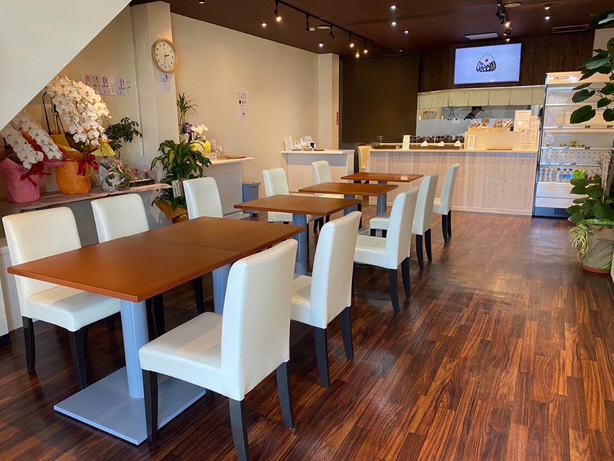 店内は、和と洋が絶妙に組み合わさったモダンな空間。木のぬくもりを感じるインテリアと、落ち着いた色合いの洋風デザインが調和しています。