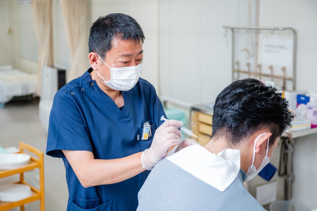 ▲注射が苦手な人のため、レーザーの温熱治療や投薬治療も用意