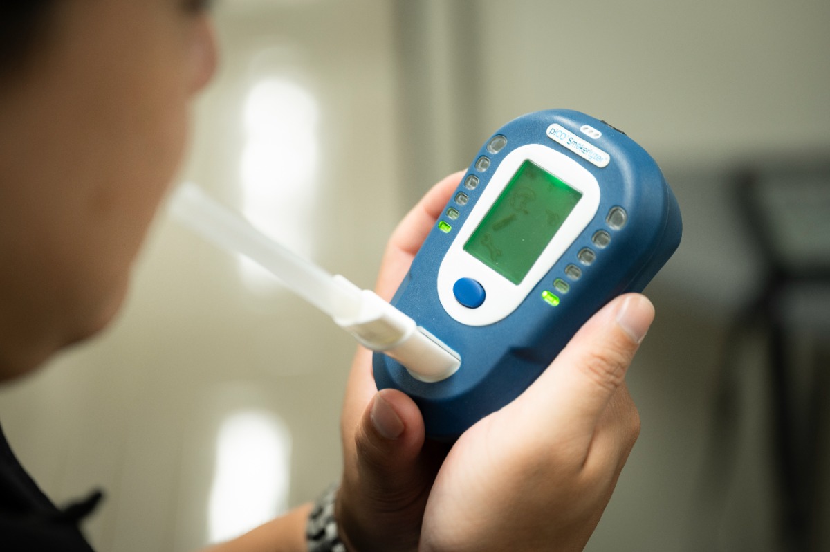 ▲禁煙外来ではタバコを吸っていないかどうか検査する機器で毎回チェック