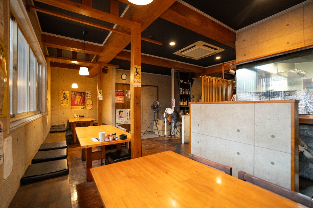 店内にはテーブル席とカウンター席があります。カウンター席で大将とお話するなんてのも良いですね。