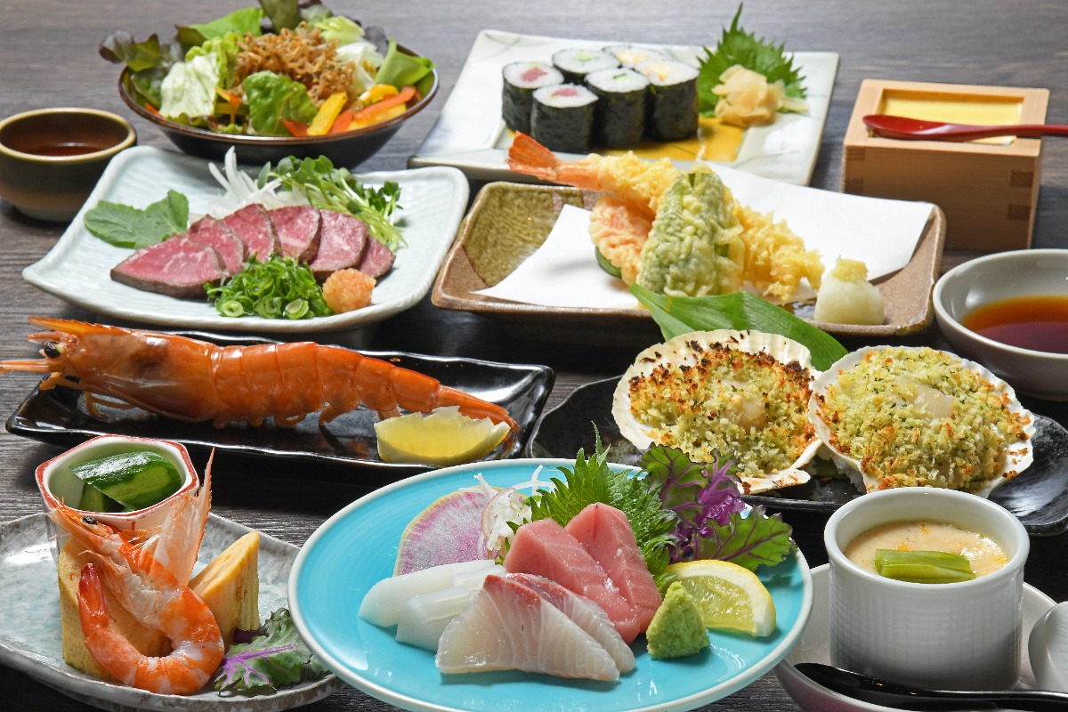 刺盛りや天ぷら、牛たたきなど10品が贅沢に楽しめる「すずしろ」1番人気の宴会コースです!