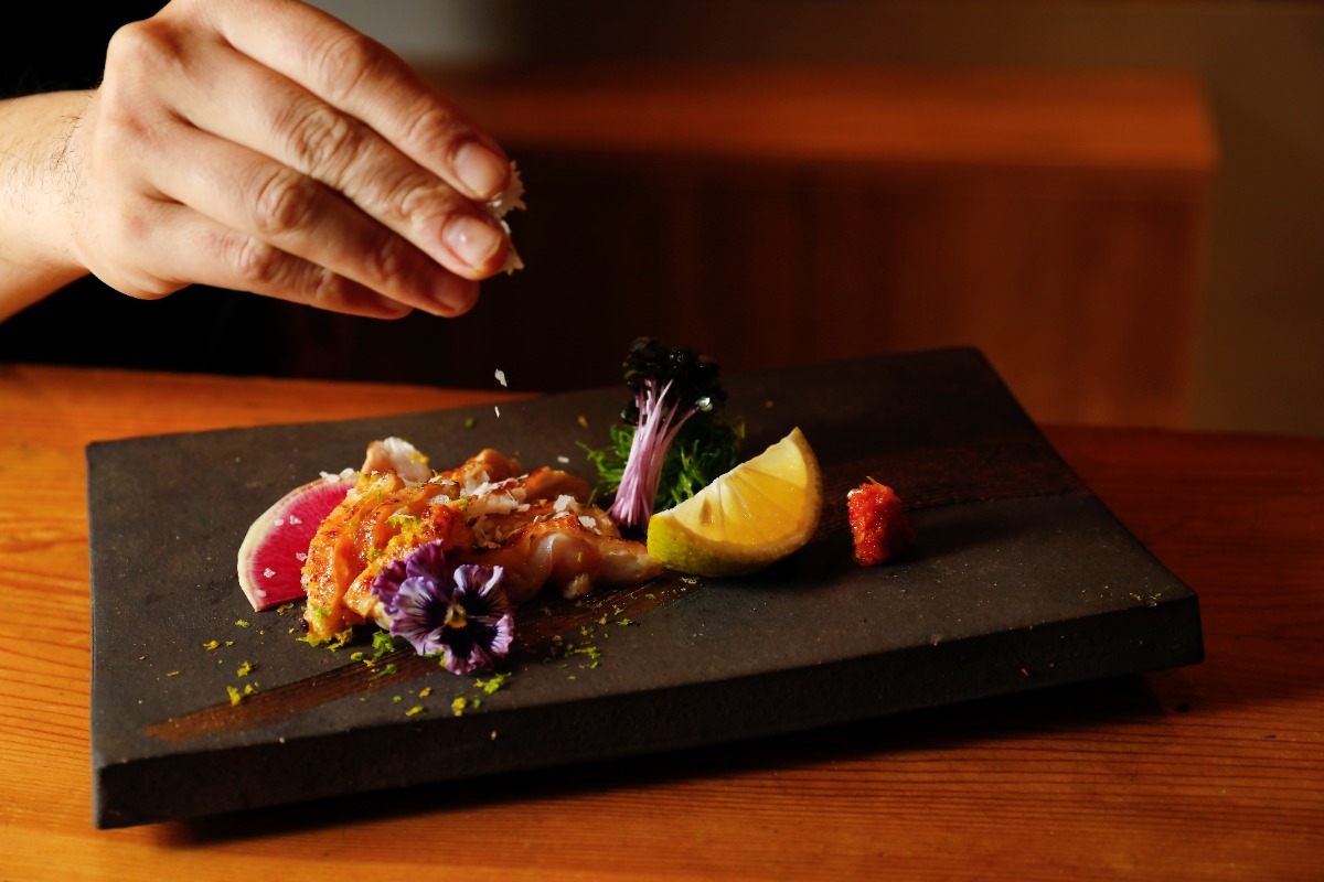 旬大粒カキフライ・和牛もつ醤油焼き・リブロースサイコロステーキ・薄切りサーロイン炙り寿司と種類豊富な小鉢を含む12品がセットになった「花籠会席コース」がおすすめ。アルコール飲み放題が不要で食事のみの場合は4,500円で楽しめちゃいます!