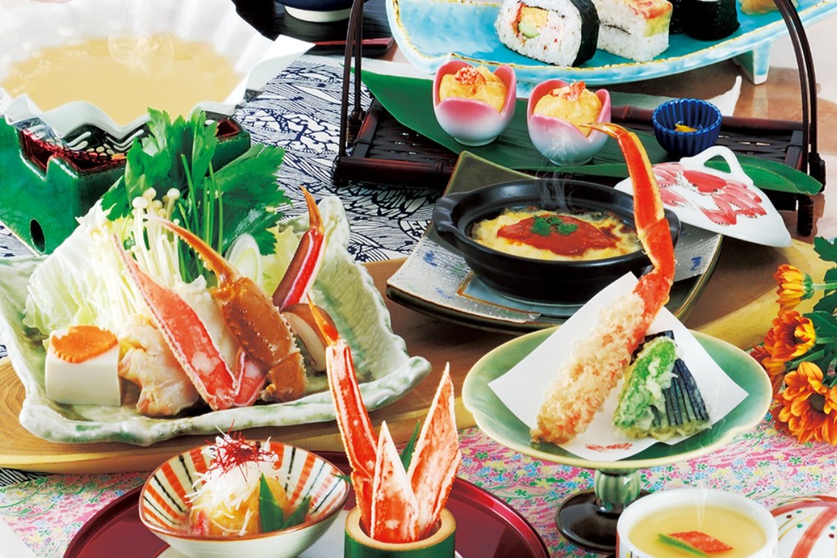 かに酢と季節の一品・かに茶碗蒸し・かにすき小鍋・かに湯葉シュウマイ・かに天ぷら・かに寿司などが楽しめます。