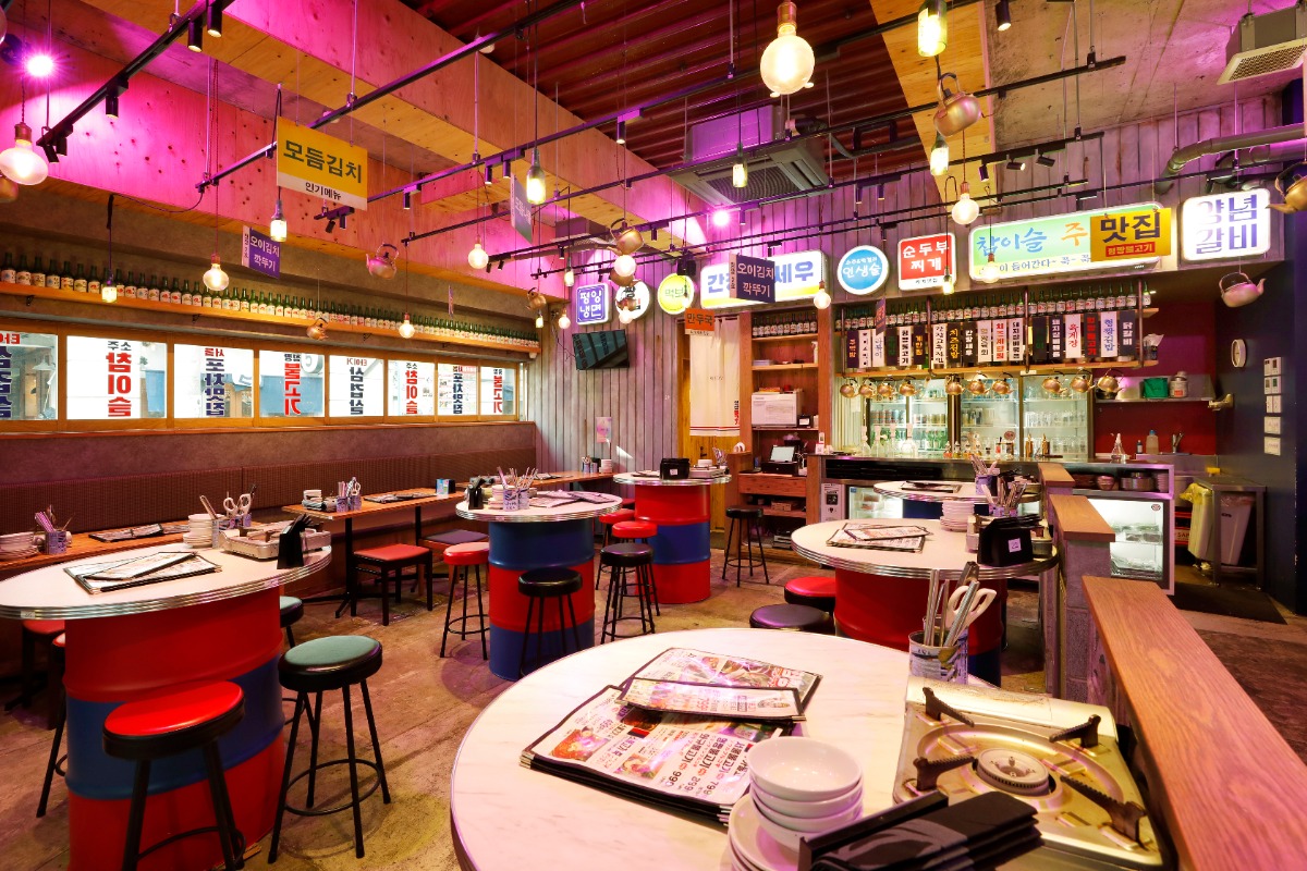 本場韓国の屋台のような店内と「アニョハセヨ!」と活気のある挨拶で、店内に入るやいなや旅行気分になれる「ヒョンチャンプルコギ 松山店」。