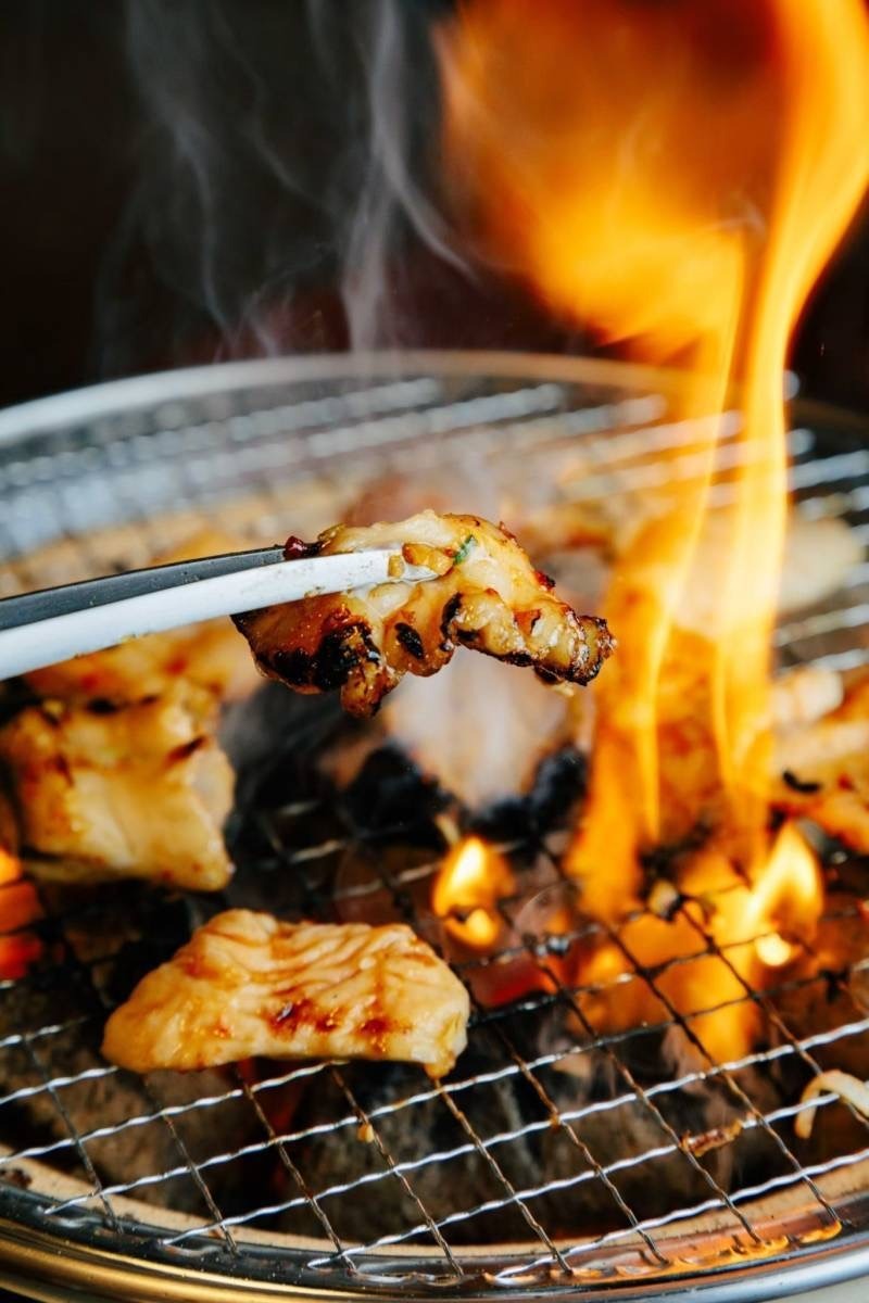 高温で焼くため肉の表面がすぐに焼き上がり、外はカリっと、中は柔らかいジューシーなホルモンが堪能できます。