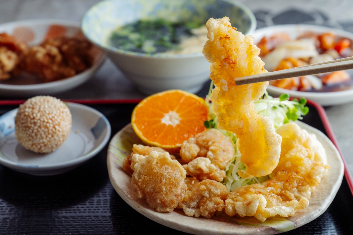 他の定食メニューでは1つしか選べない、イカ天とエビ天の両方を楽しめるのが嬉しいです。