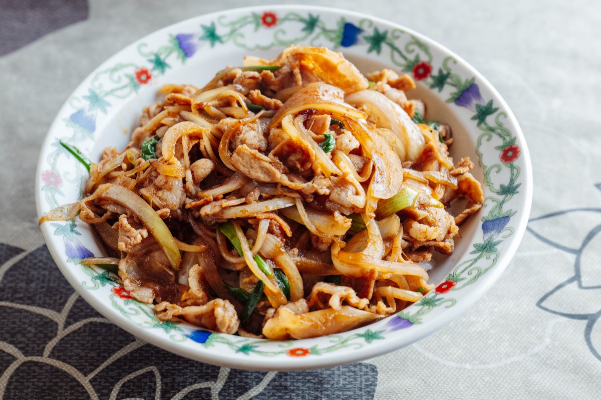 豚肉・ニラ・タマネギのバランスに箸が止まりません!