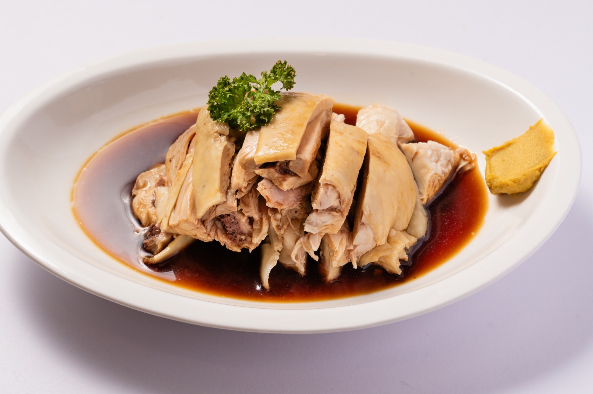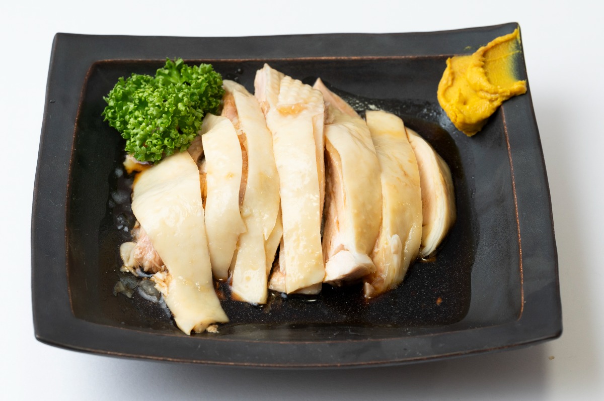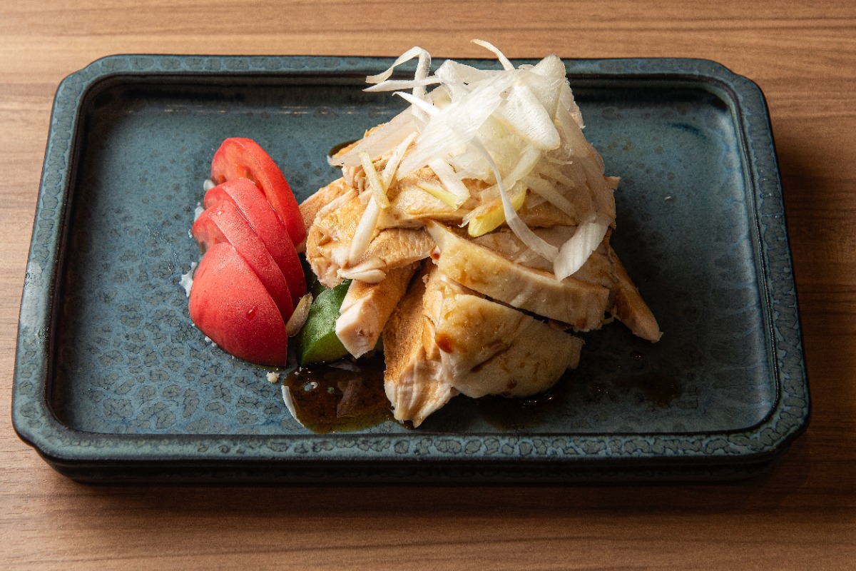 しっとり柔らか食感の蒸し鶏をオリジナルの香味ダレで味わう冷菜。