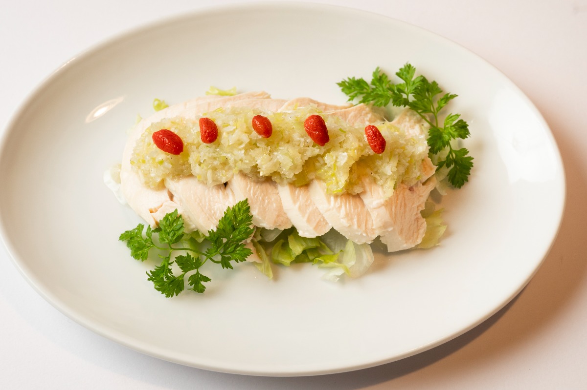 しっとり柔らかく蒸しあげた鶏肉に、定番のネギソースを合わせ、シンプルながらも素材の旨みが際立つ一皿に。