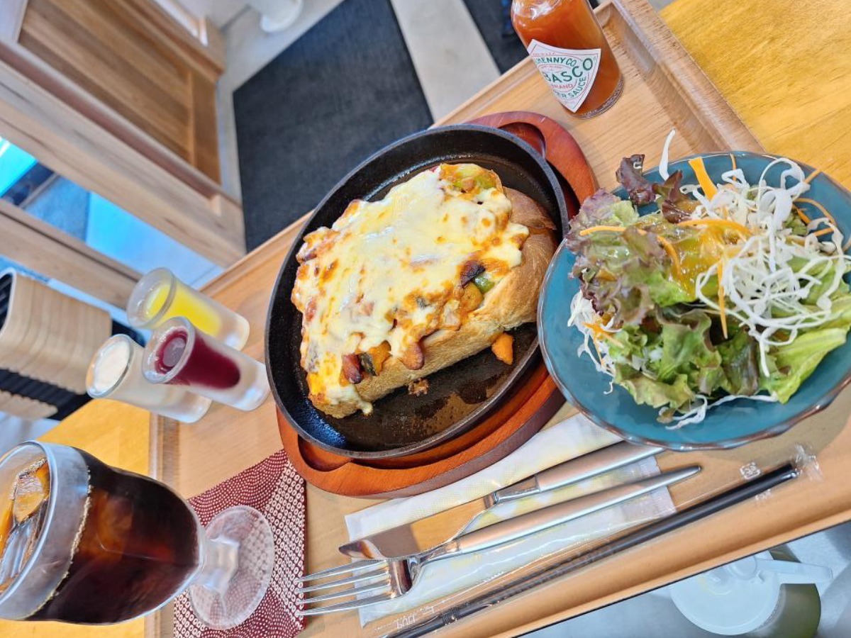 一番人気メニュー「彩り野菜のピザトーストセット」は、厚切りトーストに彩り豊かな新鮮野菜がたっぷり乗った、ボリューム満点で健康的な一品です。