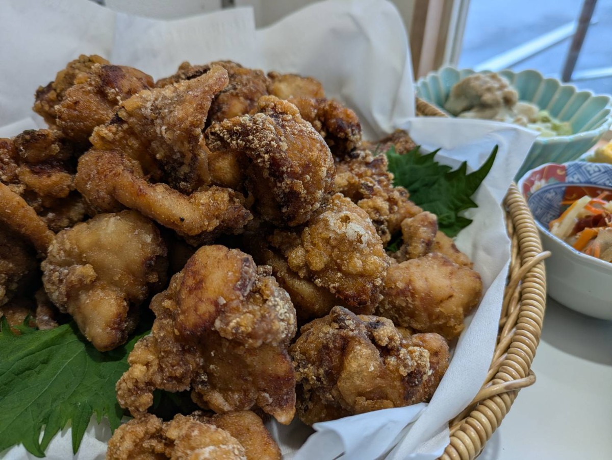 いなり寿司や巻き寿司だけでなく、お店で手作りされるおかずも人気。その中でも一晩タレに漬け込んでから揚げられる「唐揚げ」は、外はサクッと、中はジューシーな仕上がりで大人気。また、イチオシの卵焼きは2種類の味があり、甘めのしっとり卵焼きと、出汁の風味豊かなネギ入り卵焼きが用意されています。どちらも口当たりが柔らかく、素朴な味わいが広がります。その日のラインナップによっては他にもお楽しみメニューが登場するので、訪れるたびに新しい発見ができるのも魅力的です。