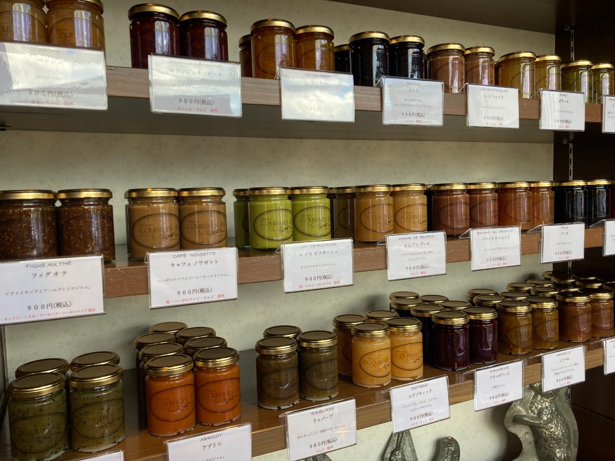 桃の「ペッシュ」や「カシス」、ピスタチオのミルクジャム「レドゥ ピスターシュ」など、様々なジャムを販売しています。