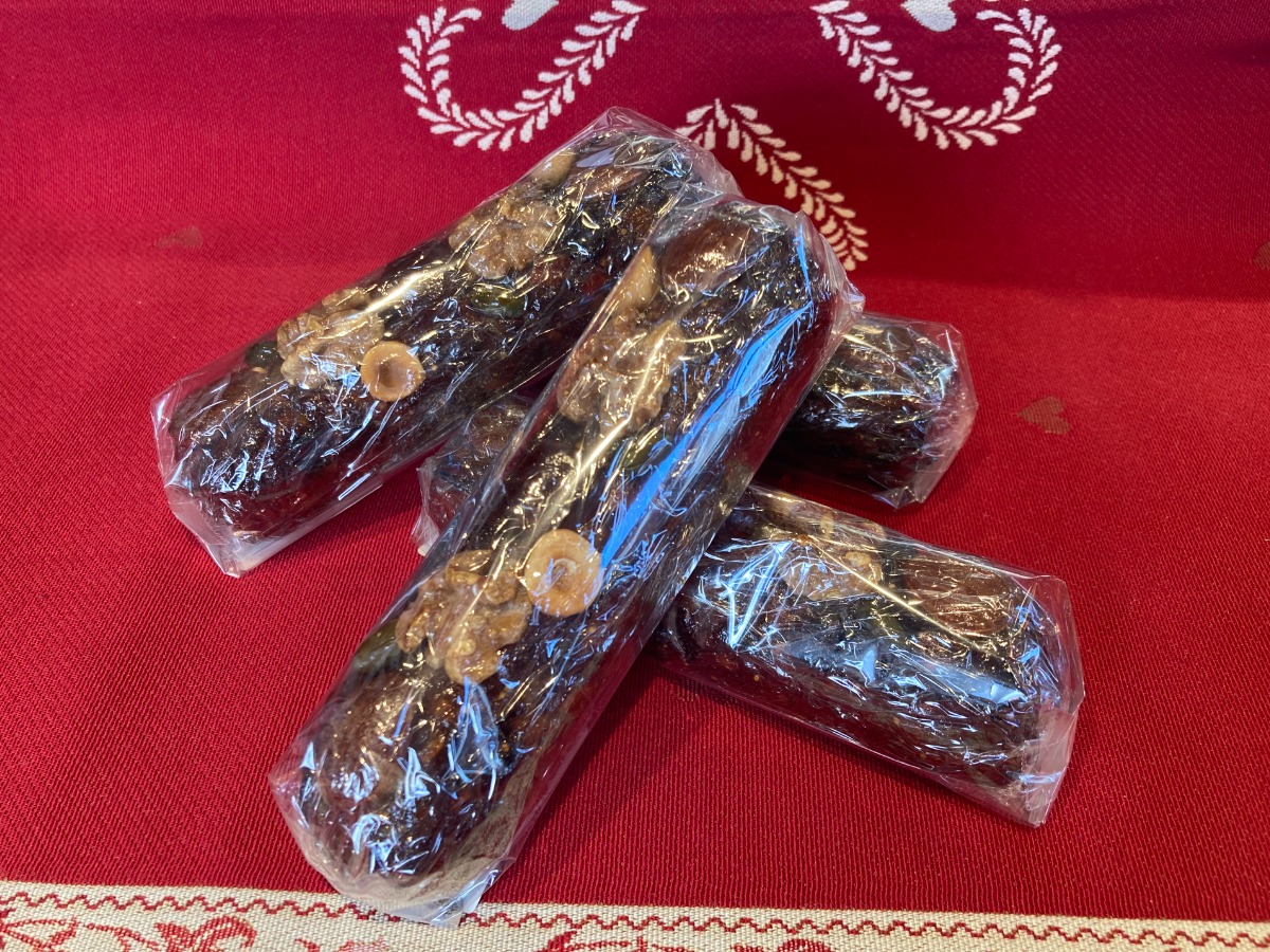 シナモン、アニスなど数種類のスパイスを効かせた、ドライフルーツやナッツをふんだんに使ったお菓子です。