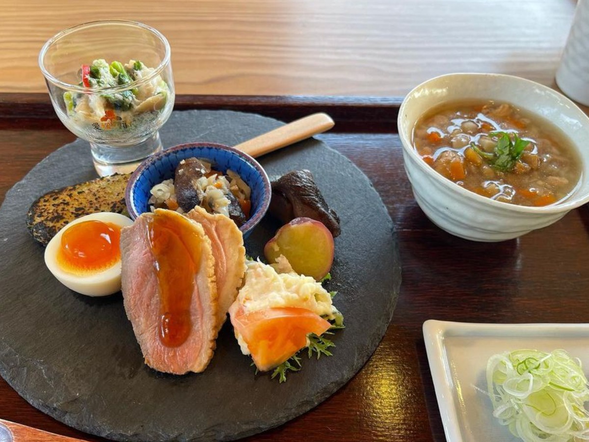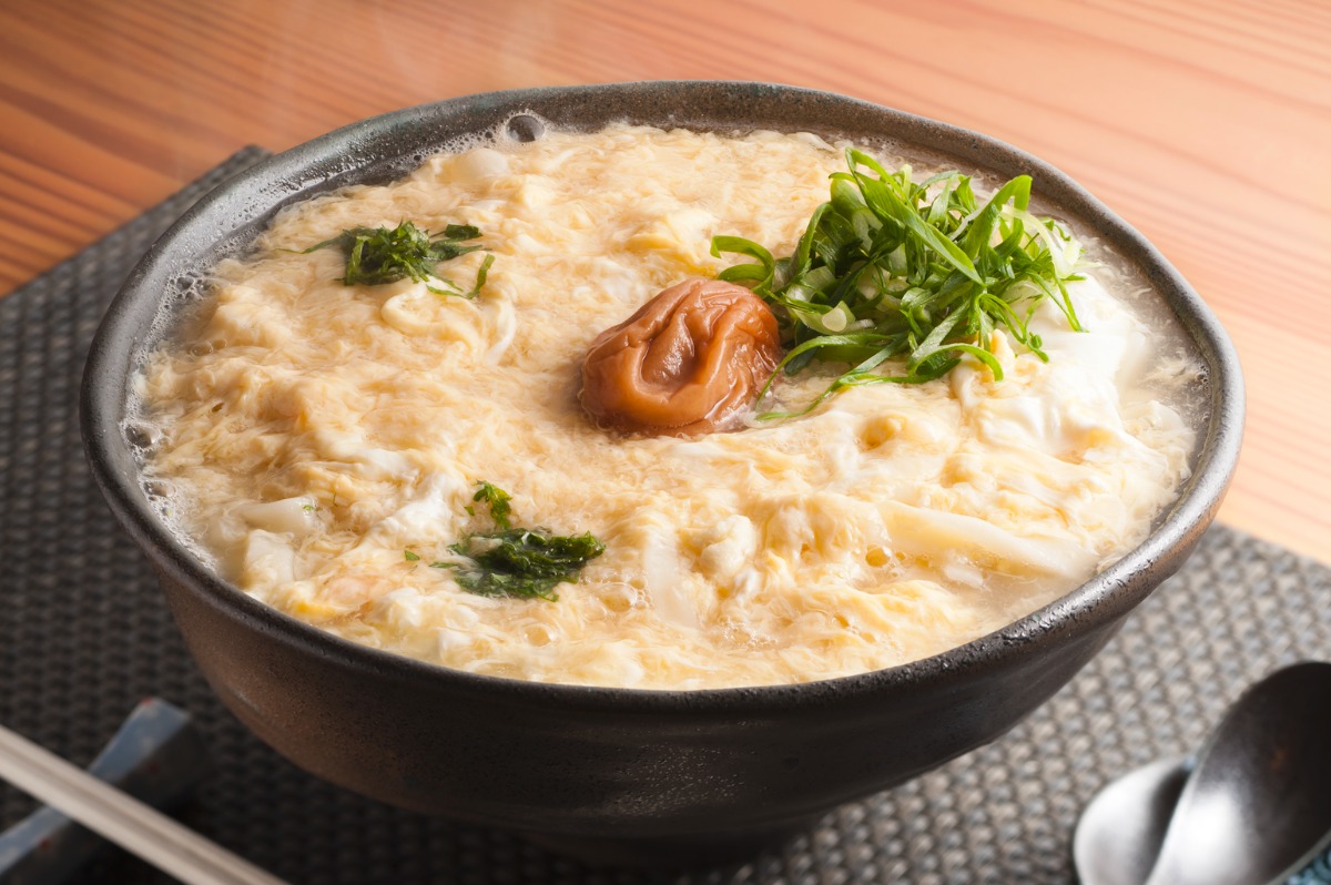 メニュー数も多く、冷たい麺に温かいダシをかける“ひやあつ”などの食べ方もメニューによって選べるのが「ばっちこい」の魅力です。中でも、看板メニューの「ばっちこいうどん」は、梅干しの酸味とタマゴのまろやかさが◎。