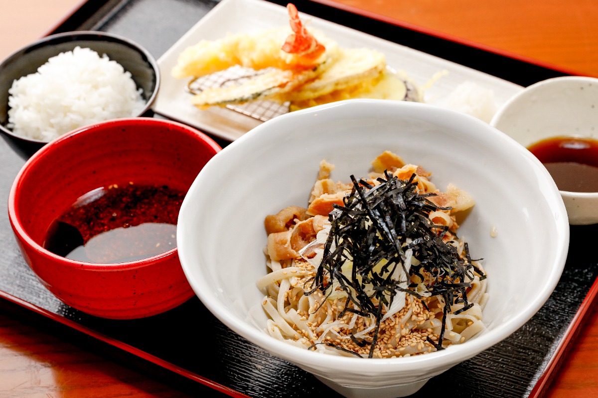 黒船soba創業10周年を記念して登場した「天ぷらすワン定食」は、名物の黒船そば・天ぷら・ご飯が付いたボリューム満点の定食。