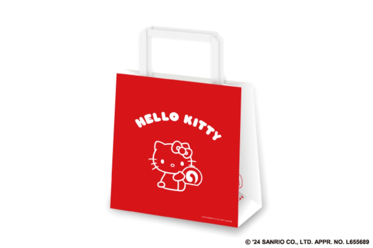 「一六タルト ハローキティ(柚子味) 5個入缶」をお求めいただくと、オリジナルショッパーバッグ(専用紙袋)をお付けします。お求めいただいてから持ち帰るまでや、プレゼントするまでの時間もハローキティのかわいらしさとワクワク感をお届けします。