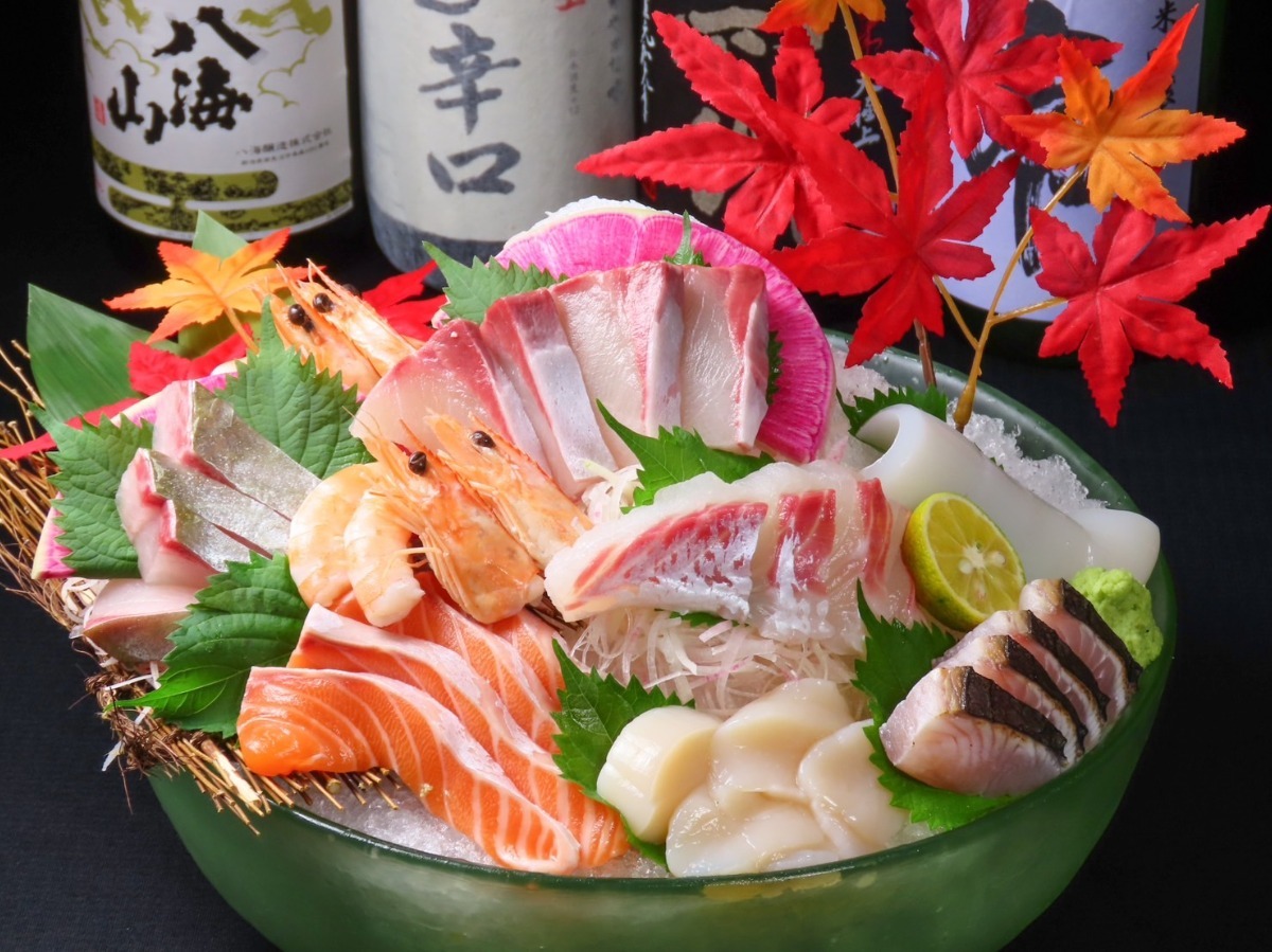 毎日新鮮な魚を仕入れ、その日のうちに調理をする「お造り盛り合わせ」など、その季節ならではの食材を使っています。